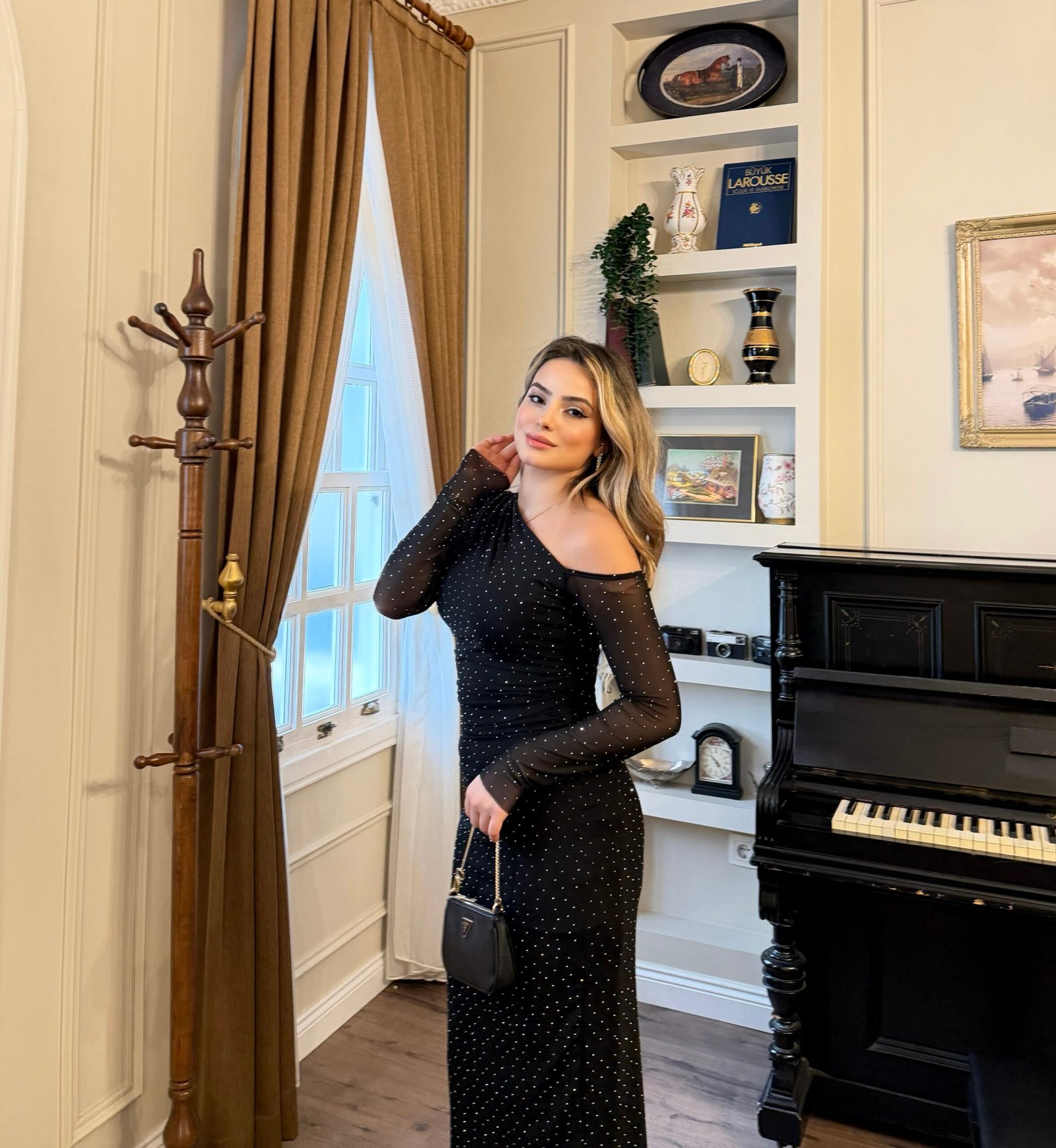 Taş Detaylı Siyah Blazer Ceket Pantolon Takım