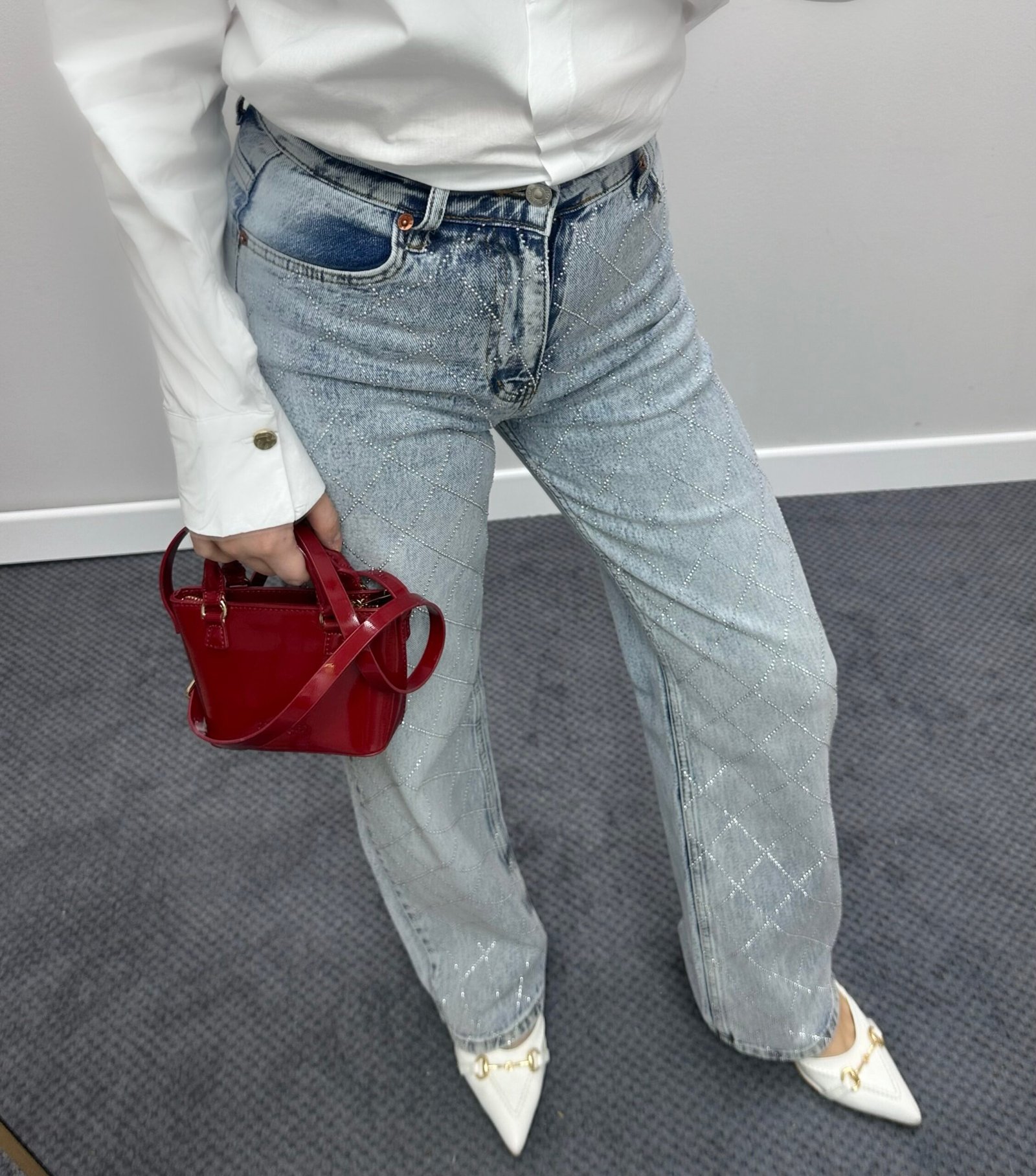 Mini Taş Detaylı Kadın Jean Pantolon – Yüksek Bel Modern Kesim
