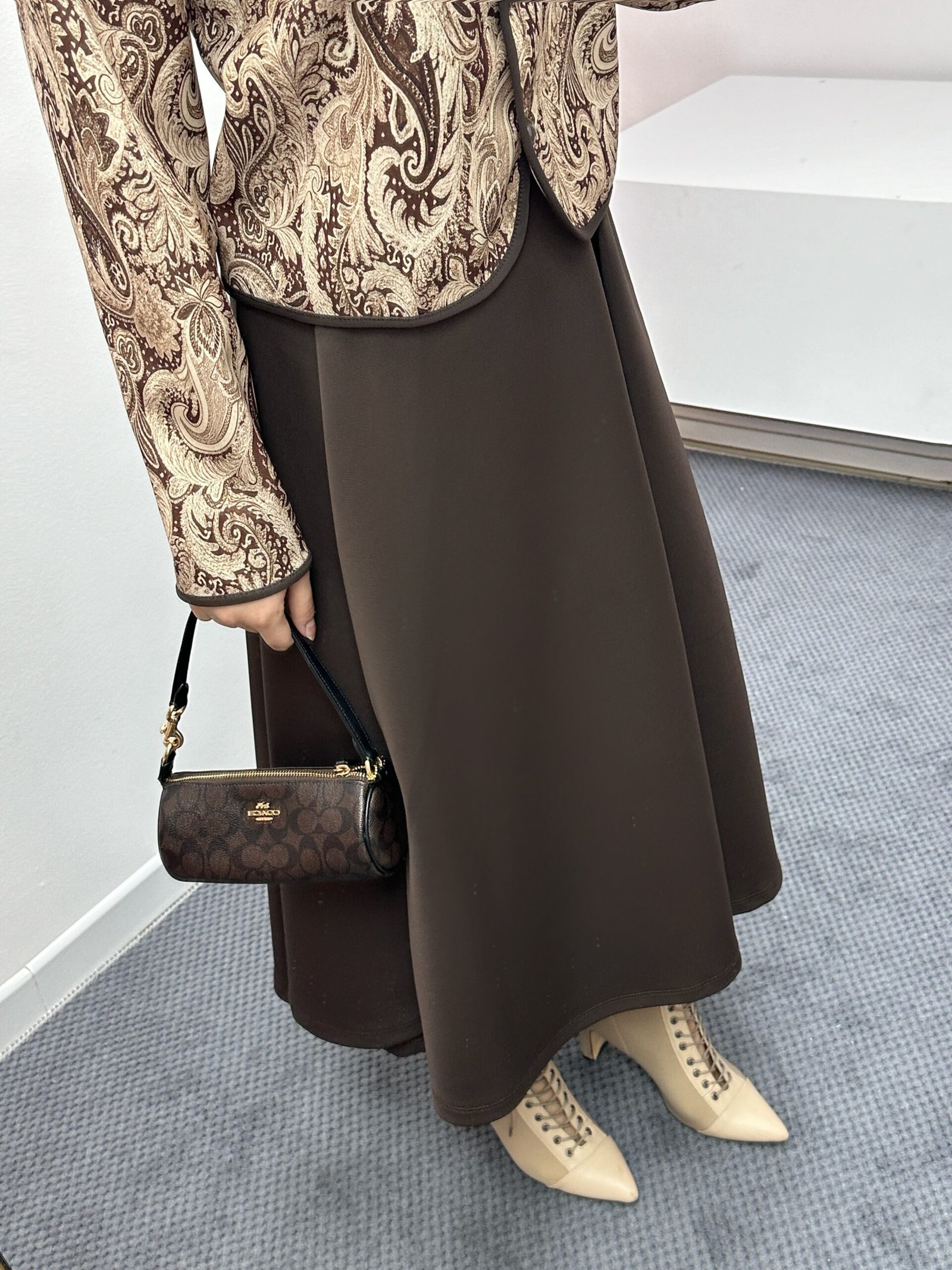 Zamansız desen ile modern kesimi buluşturan bu ikili takım, klasik şıklığı güçlü bir siluetle yeniden yorumlar. Özel dokulu desenli ceket ve akıcı formdaki etek, birlikte kullanıldığında premium bir görünüm sunar. Öne çıkan detaylar: Vintage esintili desenli ceket (ürünün asıl satış noktası) Yüksek bel, dökümlü etek Düğme detaylı ceket kapama Vücut formunu dengeleyen kesim Tok ve kaliteli kumaş hissiEk bilgi