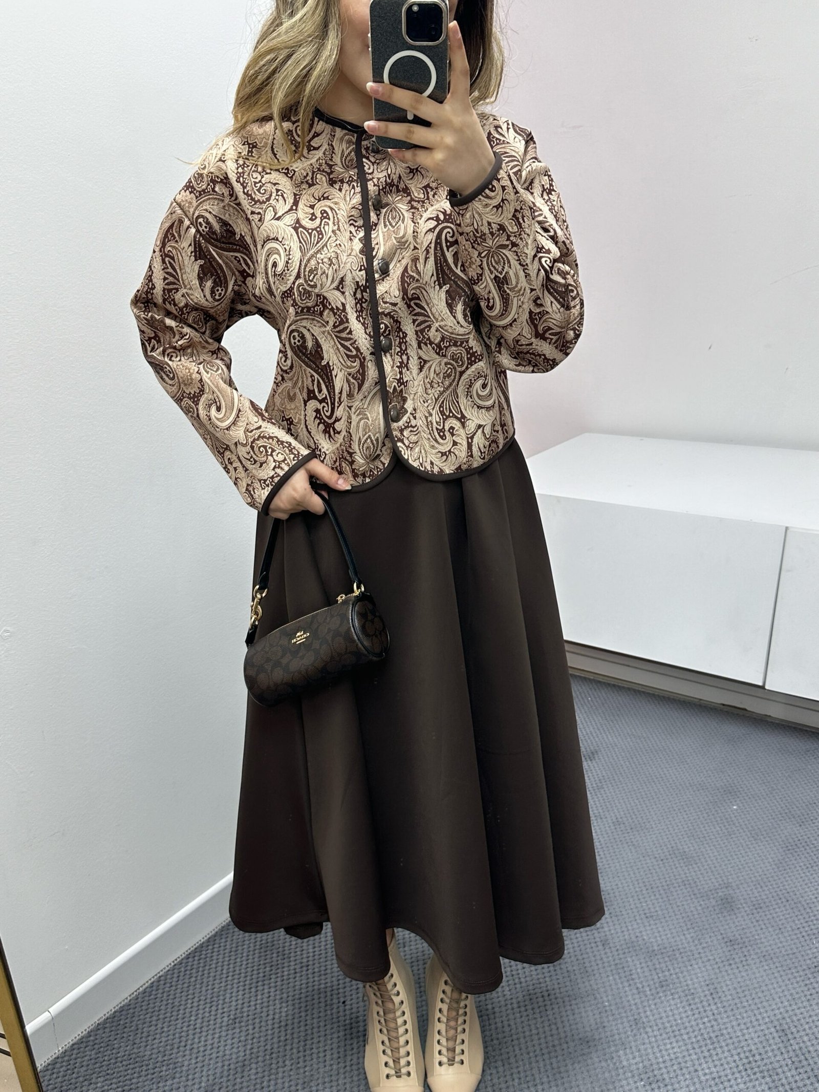 Kadın Desenli Ceket Etek İkili Takım Vintage Şık Kombin