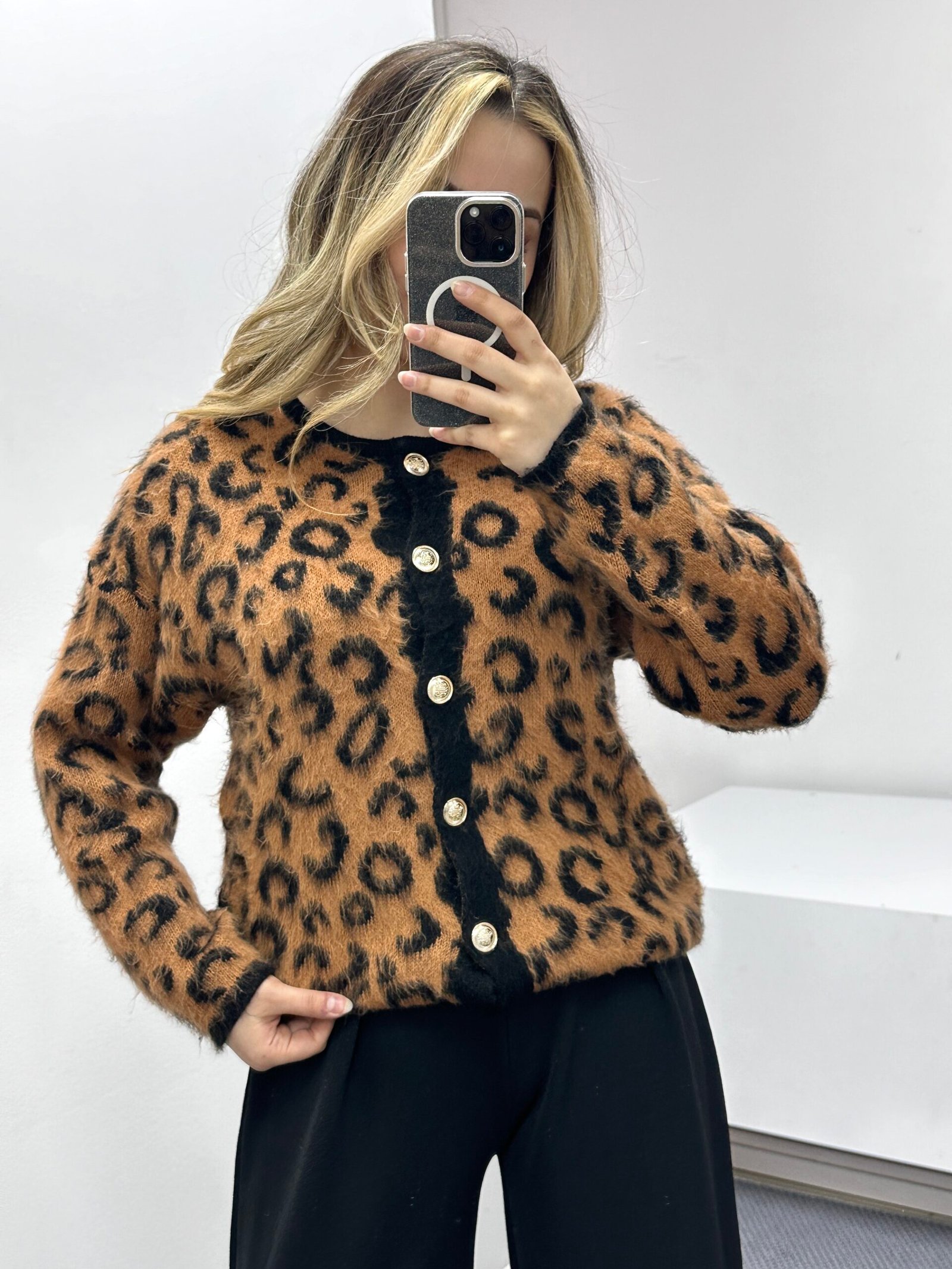 Zamansız leopar deseni ile modern şıklığı bir araya getiren bu özel tasarım kazak, yumuşak dokusu ve gold düğme detaylarıyla günlük kombinleri anında yükseltir. Hafif tüylü yüzeyi sayesinde hem sıcak tutar hem de premium bir görünüm sunar. Klasik leopar parçaların aksine, daha zarif ve şehirli bir stil yaratır. Öne çıkan özellikler: Leopar desen: Zamansız ve dikkat çekici stil Gold düğme detayı: Ürüne lüks hava katar Yumuşak tüylü doku: Konforlu ve sıcak tutan yapı Triko kumaş: Günlük kullanıma uygun Vücuda oturan kesim: Şık ve dengeli duruşEk bilgi