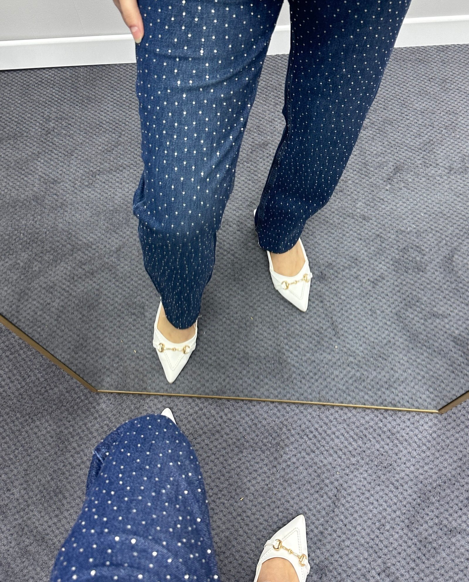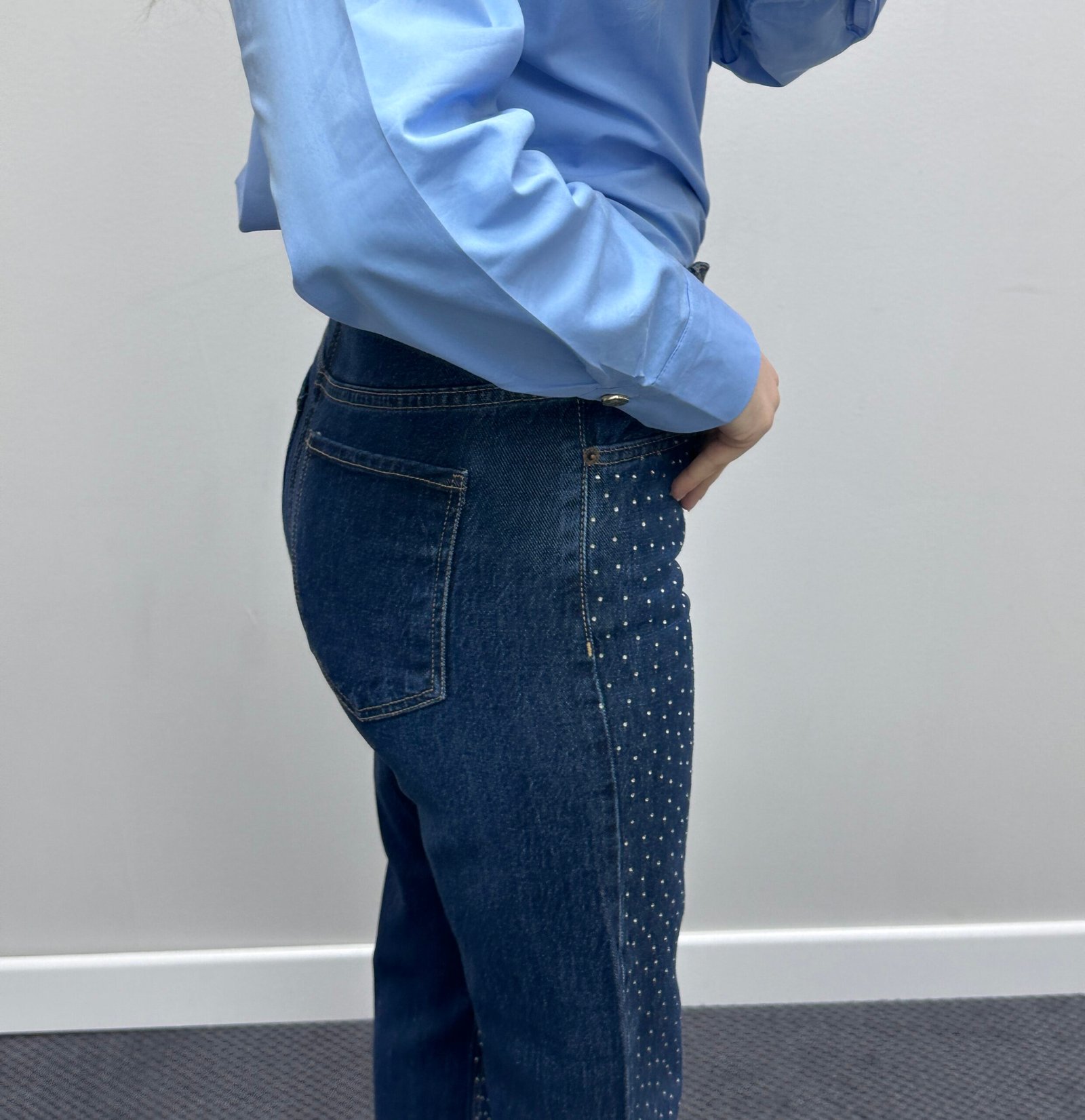 Mini Taş Detaylı Kadın Jean Pantolon – Yüksek Bel Modern Kesim