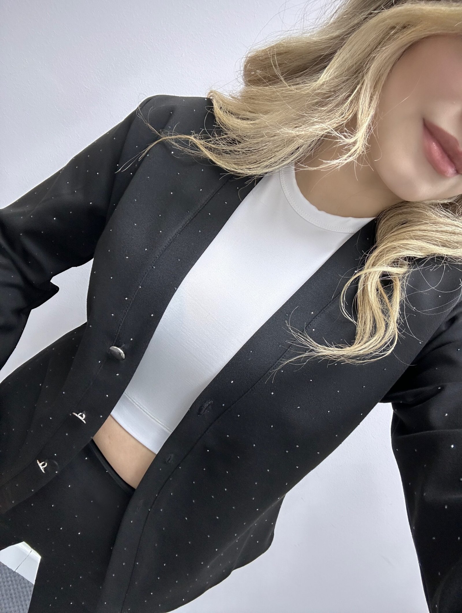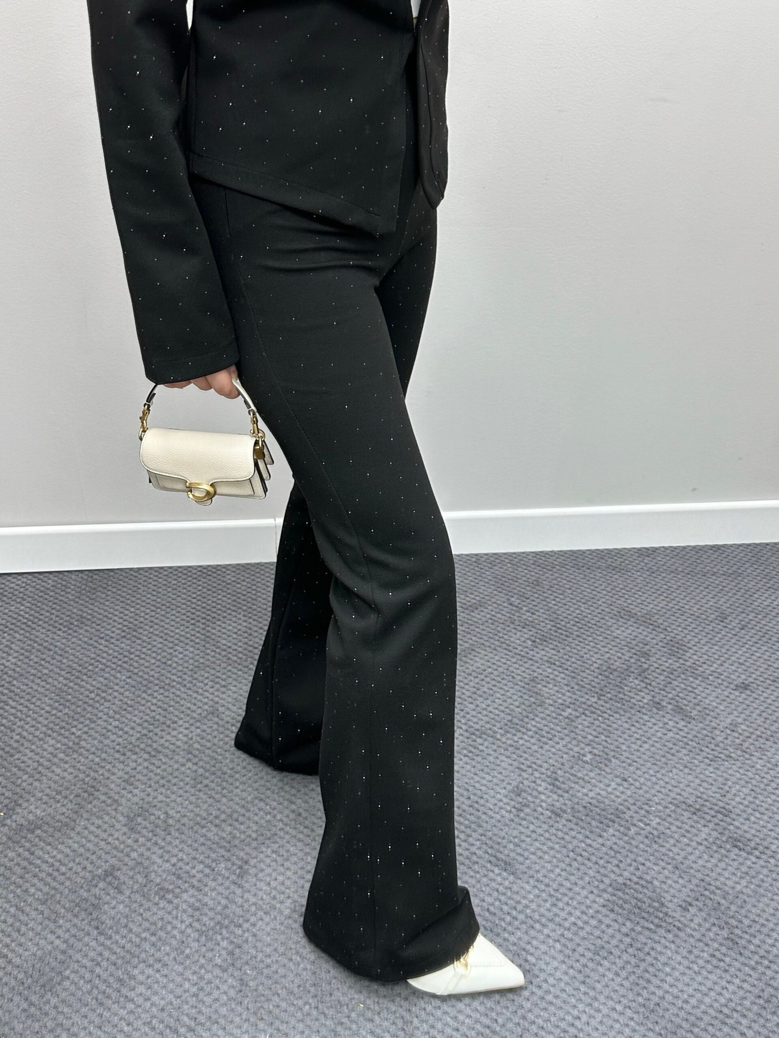 Taş Detaylı Siyah Blazer Ceket Pantolon Takım