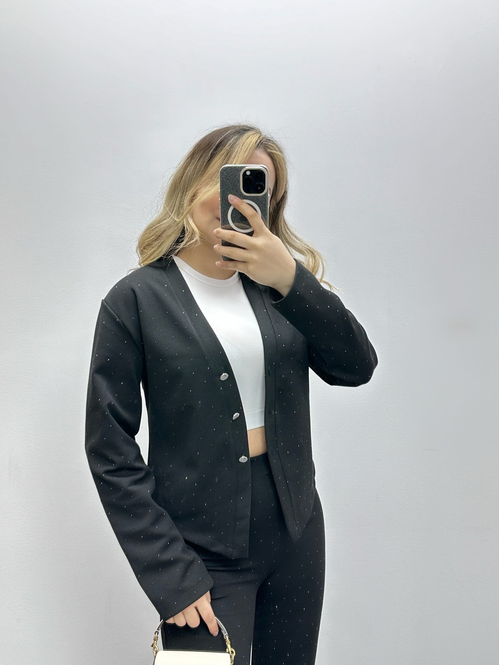 Taş detaylı siyah blazer ceket pantolon takım, zarif ışıltısı ve modern kesimiyle hem günlük şıklıkta hem de özel davetlerde fark yaratmak isteyenler için tasarlandı. Üzerindeki minimal taş (ışıltılı) detaylar, sade siyah takımı daha dikkat çekici ve premium bir görünüme taşır. Vücuda oturan blazer ceket formu ve yüksek bel, hafif ispanyol paça pantolon kesimi sayesinde uzun ve dengeli bir silüet oluşturur. Hem tek tek hem birlikte kullanılabilen bu takım, gardırobun en kurtarıcı parçalarından biri olmaya aday. Öne çıkan özellikler: Taş işlemeli kumaş: Işıltılı ve şık görünüm Blazer ceket formu: Modern ve güçlü stil Yüksek bel pantolon: Toparlayıcı ve fit duruş Hafif ispanyol paça kesim: Uzun ve zarif silüet Takım kombin: Tek parça ile zahmetsiz şıklık Bu takım; topuklu ayakkabı, bot veya minimal çantalarla kombinlendiğinde hem ofis şıklığı hem de gece kombinlerinde rahatlıkla kullanılabilir.Ek bilgi